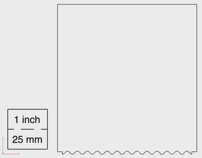 Laser or hand-cut from .5mm thick sheet styrene. Sheet styrene is flat and flexible. White or other light color is recommended.